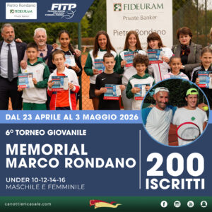 L’edizione 2026 del torneo giovanile ha fatto registrare i 200 iscritti. Per consultare orari e tabelloni clicca sul link: https://www.fitp.it/Tornei/Dettaglio-Competizione?competitionId=0167DC64-49EF-4714-9BF3-1C2A9B715887